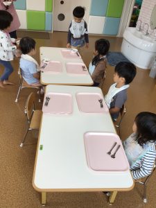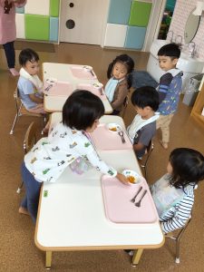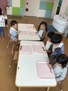 お皿も「そ〜っと優しく、こぼれないようにおいてね!」のお約束を守って上手に置いています![]()