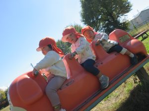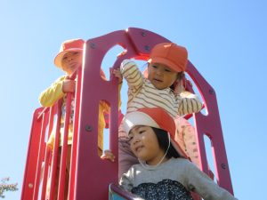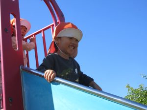 担任との鬼ごっこで「ここまでは来れないだろう、、」と滑り台のてっぺんに逃げ込んだりんごぐみさんです😜