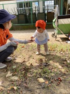 秋の自然物探しにお友だちと鬼ごっこ、、たくさんの発見のあるお散歩が大好きな子どもたちです😘