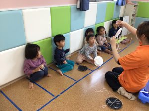 初めは触れるのを躊躇っていたお友だちも、保育士が手に乗せると興味津々で触っていました♡