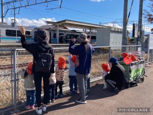 ももぐみさんとりんごぐみさんで電車を見に行きました🚃💓