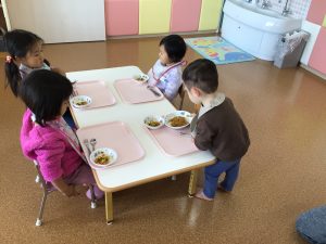 身の回りのことも習慣づいてきて最近はお友だちや保育士の手伝いを喜び、率先してやっていた子どもたち。