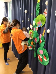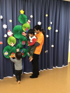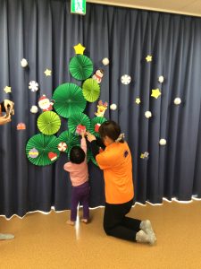 みんなが手伝ってくれたおかげで可愛いツリー🎄が完成!