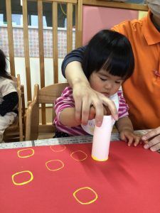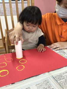 色が付くのを不思議そうに見ながら、楽しく作っていました☺️