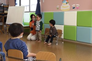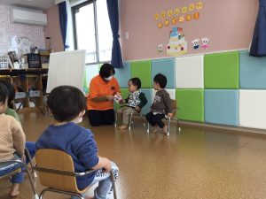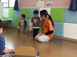 2人とも、緊張気味でしたが保育士のお手伝いもあり、名前、何歳になったか、好きな食べ物の3つを上手に言うことが出来ました