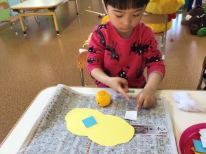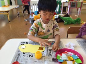 糊を使っての製作がだいぶ上手になってきたりんごぐみさんです☺️