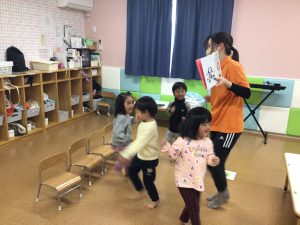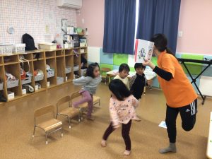 いつもはじっと座ってみることが多い絵本の時間ですが、この日は絵本に出てくるパンダさんの真似っこをして体を動かしてみました❣️