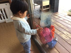 お友だちと「こんにちは😆」
