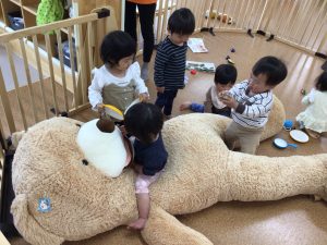 ぬいぐるみが大好きな子どもたちにとって夢のような大きさのクマさんに大興奮💓