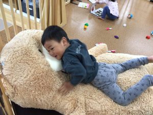 クマさんの上にダイブして“ぎゅー“っと抱きしめてみたり👐