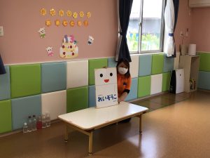 職員の出し物では、大型絵本「れいぞうこ」の読み聞かせと