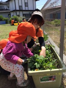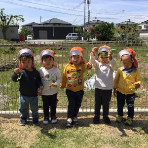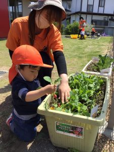 今日自分たちで収穫した二十日大根はお家にお土産に持ち帰ります🎁
