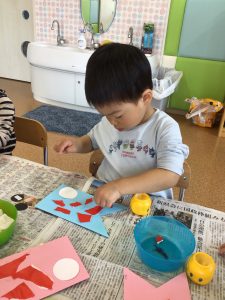 今度は糊を使ってこいのぼりに模様をつけます❣️