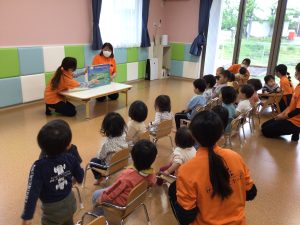 「大きな絵本!」「おまめくんたちがたくさん!」と注目してみていましたよ👀