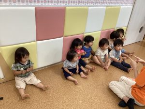 「おいでおいで」の動きに合わせて、子どもたちも体でリズムをとりながらノリノリな様子🎵お家でもぜひやってみてください☺️