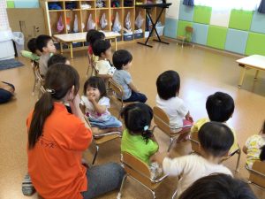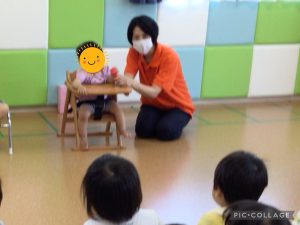 いちご組のお友だちはちょっぴり恥ずかしさもありましたが、『お名前・何歳になったか・好きな食べ物』を自分で上手に発表する事ができました🎤