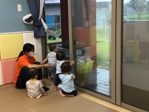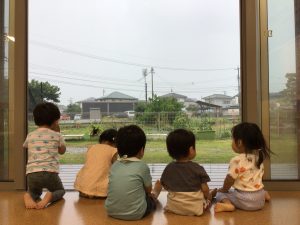 激しい雨と雨音に子どもたちもびっくり&興味津々💡