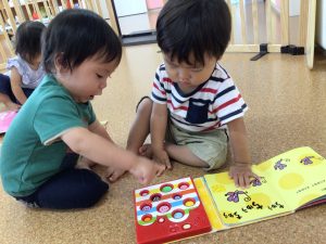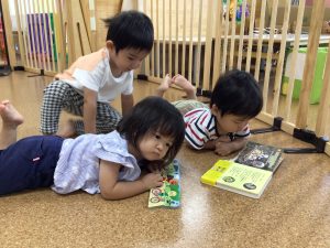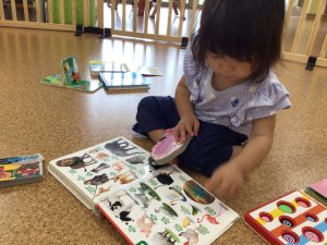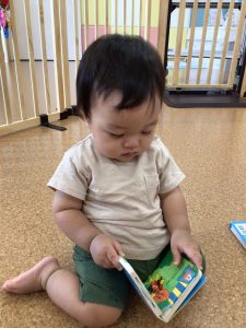自由遊びでも好きな絵本を選んで自由に見るのを楽しんでいました🎵