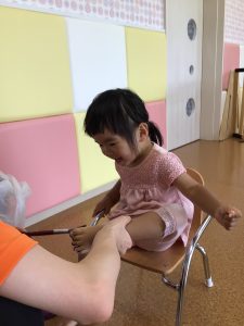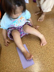 お友だちが足型を取っている姿を見て、「わたしも〜^^」と紙を取って予行練習するような姿も見られました♡