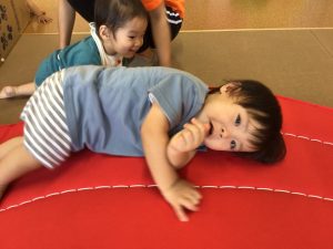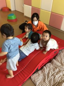 ハイハイをしていたお友だちも歩行が安定して歩けるようになったり、ハイハイのお友だちも腕や足の力を使って山を登ったり降りたり、楽しそうに遊んでいます♡