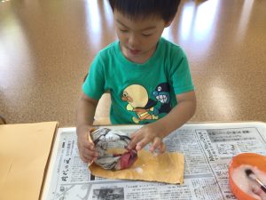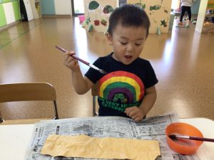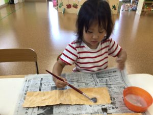 りんごぐみさんは筆を使って何かを作っていますね👀✨