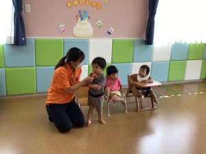 自分のお名前を言ってみたり、「2歳」を指で表してみたり、大勢のお友だちの前でも発表を頑張る事ができました👏