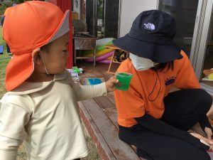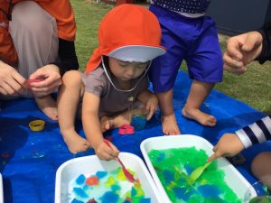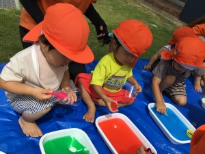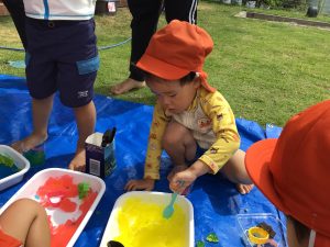 「あかー!」「きいろー!」といろんな色を混ぜてみる姿もありました🎵