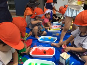 カラフルな寒天にみんな大興奮🎵夢中な子どもたちです😁