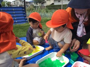 誕生会の後は、みんなで寒天遊びを楽しみました🫧