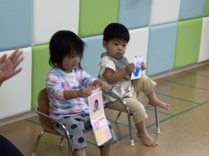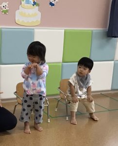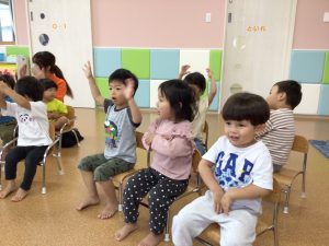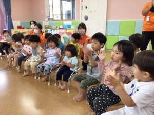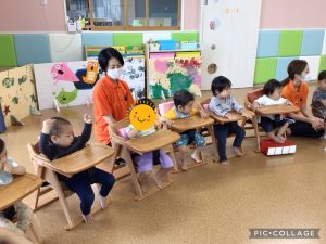 大きい組のお友だちの元気な歌声に合わせてももぐみさんも腕を振ったり体を揺らしたりして音楽を楽しんでいました😚