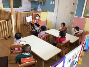 保育者の真似をしながら言葉にするのを楽しみながら聞いていました☺️