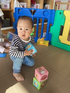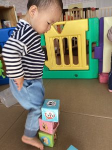 この後も積み上げては崩す、を繰り返し面白がっていました😄