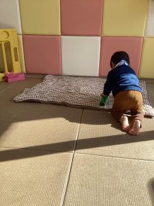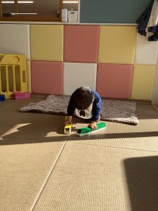 保育者の手作りおもちゃで遊んでいるもも組さん🌟