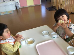 とフラッシュカードでやったお煎餅のカードを思い出して「一緒❤️」と見せてくれましたよ☺️