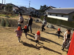 お家の方も捕まらないように「逃げ切るぞ‼️」と円陣を組み、大人も気合がバッチリです🎵