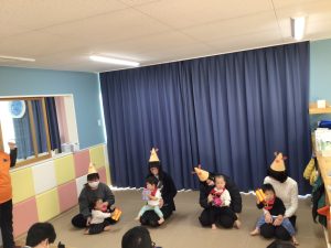 鈴の音がなるプレゼントを不思議そうに耳に当ててみたり、「音がなる〜🎵」とたくさん振ってみたりしながら、“あわてんぼうのサンタクロース“に合わせてリズム遊びを喜んでいました😊