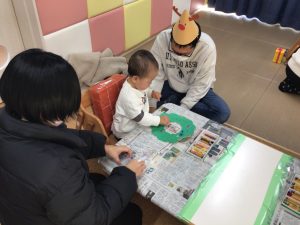 サンタさんになりきって楽しんだあとは、大好きなお家の方と一緒にクリスマス製作を行いました🎄✨
