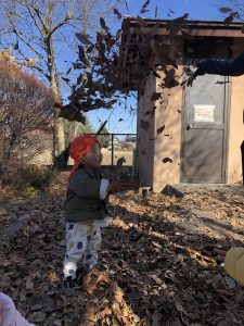 落ち葉のシャワーをすると、ひらひら舞ってくる落ち葉を捕まえようと手を伸ばしたり、体を掠めていく落ち葉に「へへ😆」と笑い声も響いていました⭐️