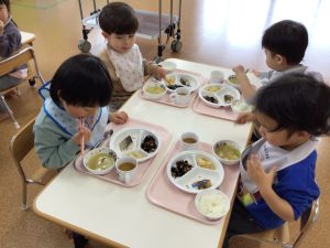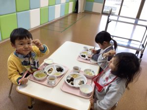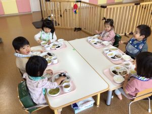 いちご組さんはみんなで向かい合って仲良く食べました🍓