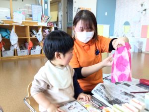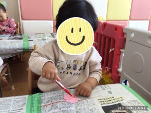 「たくさんあそんでくれてありがとう💓」の気持ちを込めて、もも組さんといちご組さんでプレゼント作りをしています🎁🎀
