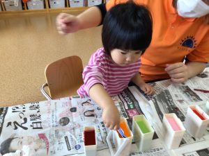 和紙を絵の具に付けて染め紙をしたり・・🤭