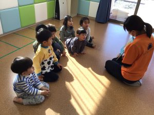 「今日は長いお話だよ!」と伝えると「やったー!!」と大喜びの子どもたち☺️