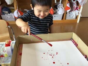 画用紙に好きな色の絵の具をポタポタと垂らし・・・