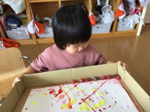 好きなように箱を動かして、転がっていくビー玉を見つめている姿はとっても可愛らしかったです❤️
