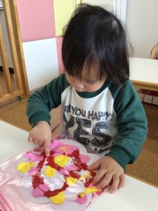 保育者が書いた線に沿って上手に貼っていくことができました😊