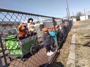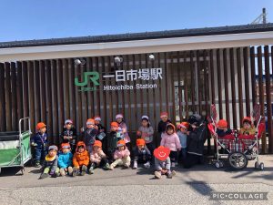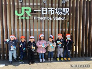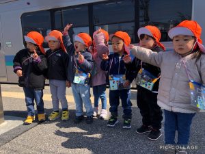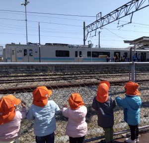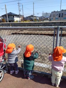 りんご組のお兄さんお姉さんが電車に乗ると聞き、もも組といちご組のお友だちも駅までお迎えに行ってきました!