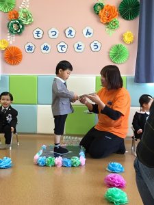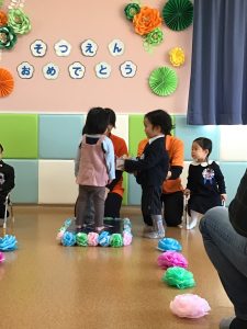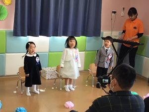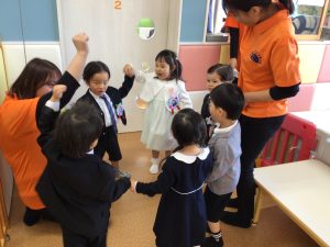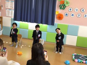 式の前に先生から「がんばろうね✨」と声を掛けてもらい、みんなで「えいえいおー!」をしましたよ☺️
