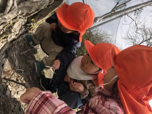 木の根元に何かを発見👀!「みんなきてー!」と声がかかりみんなで観察をしているそこには、小さなアリさんがいました🐜
