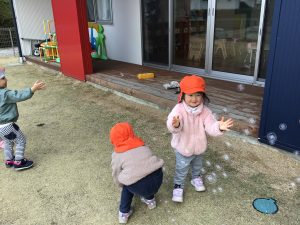 今回は、園庭でしゃぼん玉をして遊んだ日の様子をお届けしますね🫧