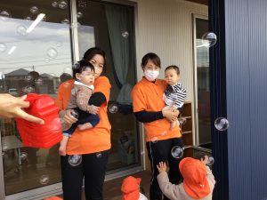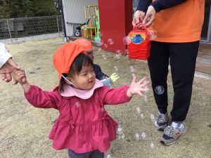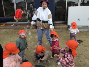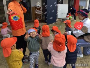 しゃぼん玉を飛ばすと「きゃぁ〜〜!」と大喜びの子どもたち😆